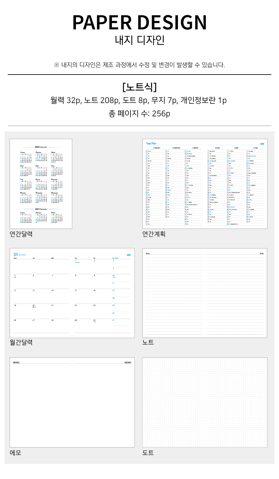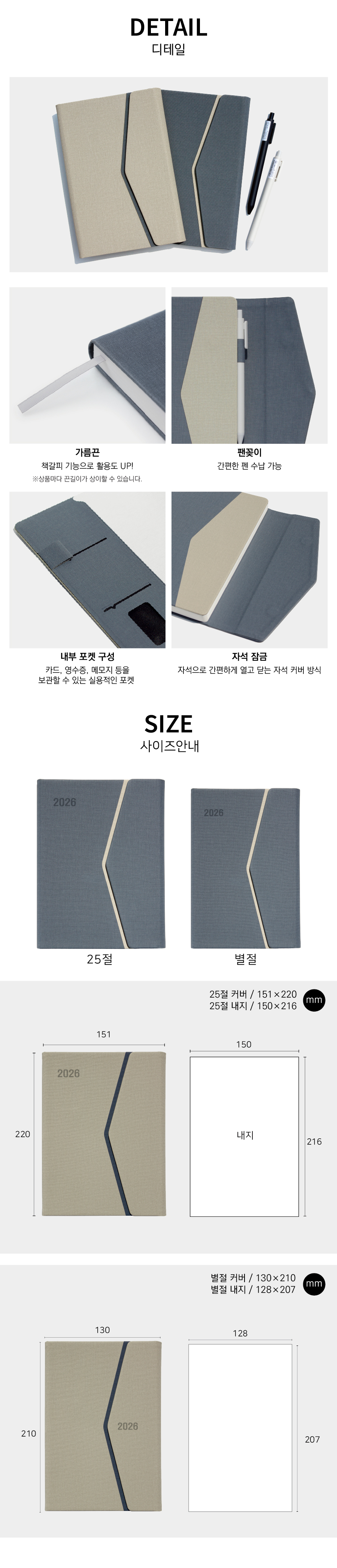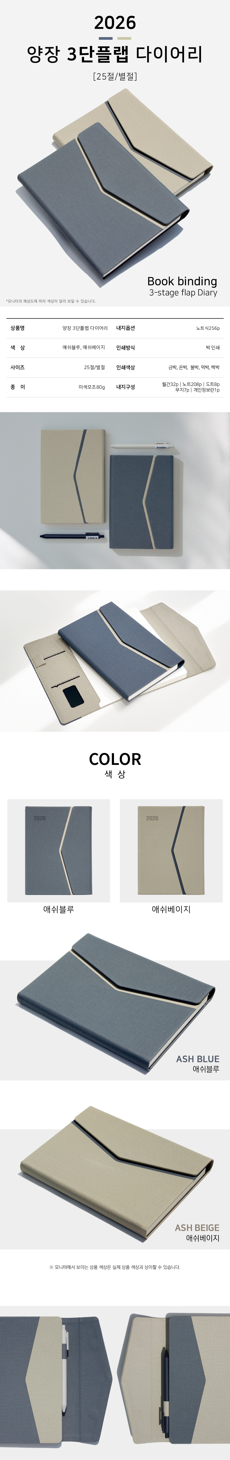 3단 양장 플랩 다이어리 / 에쉬블루 / 32절